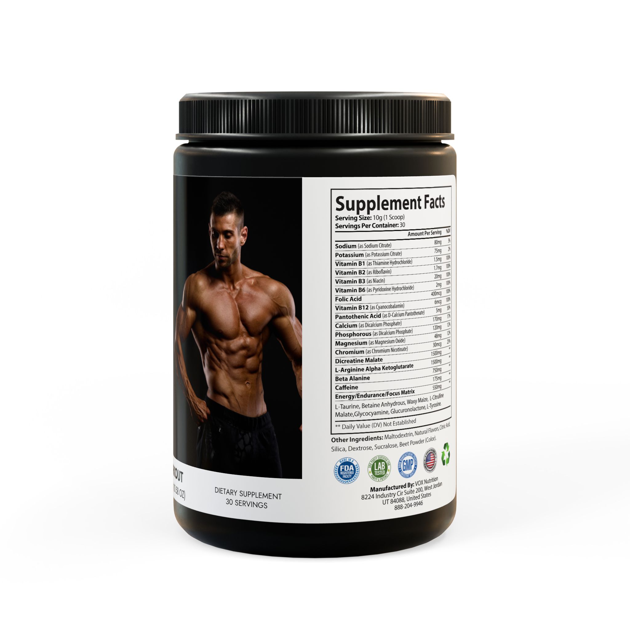 Ingredients: Sodium (as Sodium Citrate), Potassium (as Potassium Citrate), Vitamin B1 (as Thiamine Hydrochloride), Vitamin B2 (as Riboavin), Vitamin B3 (as Niacin), Vitamin B6 (as Pyridoxine Hydrochloride), Folic Acid, Vitamin B12 (as Cyanocobalamin), Pantothenic Acid (as D-Calcium Pantothenate), Calcium (as Dicalcium Phosphate), Phosphorous (as Dicalcium Phosphate), Magnesium (as Magnesium Oxide), Chromium (as Chromium Nicotinate), Dicreatine Malate, L-Arginine Alpha Ketoglutarate, Beta Alanine, Caffeine, L-Taurine, Betaine Anhydrous, Waxy Maize, L-Citrulline, Malate ,Glycocyamine, Glucuronolactone, L-Tyrosine. Other Ingredients: Maltodextrin, Natural Flavors, Citric Acid, Silica, Dextrose, Sucralose, Beet Powder (Color).